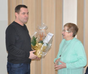„Wieder ein Jahr mit vielen verschiedenen Themen und Veränderungen die wir gemeinsam gemeistert haben“ so OV Groß. Ein großer Teil konnte umgesetzt bzw. vorbereitet werden oder ist noch aktiv in der weiteren Umsetzung. Der Ortschaftsrat Hemsbach habe zusammen mit der Bevölkerung sowie der Stadt Osterburken wieder einige Projekte durchgeführt, die zwar immer sehr Zeit intensiv waren, aber nach erfolgreichem Abschluss doch für alle zur Zufriedenheit geführt haben. Mit dem „Winterzauber“ durch die Jugend Hemsbach, das Maibaumfest, die jährliche Flursäuberung, der Kindernachmittag sowie weitere Aktivitäten der Hemsbacher Bevölkerung, der Feuerwehr Hemsbach und der Ortschaftsverwaltung haben sich die Aktivitäten über das gesamte Jahr fortgesetzt. Die Feuerwehrhauptversammlung, die wieder mit Jugendlichen bzw. der Jugendfeuerwehr stattfand, fand ganz im Zeichen der Kameraden statt. Es wurde wieder Beförderungen und Aufnahme in die Erwachsenenwehr ausgesprochen. Im Laufe des Jahres wurden verschiedene Weiterbildungen in Feuerwehrspezifischen Themen durchgeführt und die Wehr sei bestens aufgestellt. Groß dankte den Kameraden um Kommandant Thomas Heilmann für Ihre umfangreiche Arbeit und die Bereitschaft sich weiter zu bilden. Auch die Jugendfeuerwehr sei sehr aktiv und in den letzten 6 Jahren habe man bereits 9 Jugendliche in Erwachsenen Wehr aufgenommen. OV Groß bedankte sich bei den beiden Jugendsprechern Stefan Schwab und Jonas Gehrig mit einem Gutschein für ihr Arrangement. Rückblickend stellte OV Groß fest, dass die Haushaltsthemen aus 2017 zum größten Teil abgeschlossen sind. So wurde unter anderem der Gehweg zum Bahnhof Adelsheim Nord, eine neue LED Uhr am Brunnenplatz, Beschaffung verschiedenem Equipment, Sanierung Heuweg mit einer Spritzdecke, Spielgerätetausch- und Kauf am Spielplatz, Feldwegsanierungen und weitere kleinere Maßnahmen abgeschlossen. Für den Haushalt 2018 stehen weitere kleinere Maßnahmen zur Stärkung der Attraktivität und Aufwertung unseres Ortsteiles an, bei gleichzeitiger Einbindung der Bevölkerung in diese Projekte führte OV Groß aus. Dies seien unter anderem ein barrierefreier Zugang ins Gemeindehaus, Sanierung der Rollläden der Gemeinderäume, Instandhaltungen am Bauwagen, ein Pavillon für den Familienplatz, Feldwegsanierungen sowie weiter kleinere Maßnahmen. Die WLAN Komponenten wurden bereits durch den Ortschaftsrat an den verschiedenen Gebäuden montiert und werden jetzt noch konfiguriert. Somit ist der Ortskern flächendeckend bis zum Bauwagen mit WLAN ausgestattet. Ein sehr erfreuliche und gelungene Maßnahme. OV Groß kündigte an, dass die arbeiten rund um den neuen Familienplatz anstehen und hier hoffe er wieder auf die tolle Unterstützung der Hemsbacher Bevölkerung. Die Entwicklung des Kindergartens in Hemsbach sei sehr positiv. Der Kindergarten sei sehr gut besucht und seit diesem Jahr wird 3-mal in der Woche ein Mittagessen angeboten. Diese Angebote sei hervorragend angenommen worden. Im neuen Jahr stehe das 25-jährige Jubiläum an. Auch sei ein großes Familienfest 2018 geplant, welches im letzten Jahr witterungsbedingt ausgefallen ist. OV Groß bedankte sich bei seinem Gremium für das gute Miteinander und die gute Unterstützung in allen Themen rund um Hemsbach. Weiter dankte er allen, die zum Wohle des Stadtteils Hemsbach und seiner Bürger ihren Beitrag geleistet haben, insbesondere die Ehrenamtliche Helfer im Hintergrund. Ohne diese gemeinschaftliche Hilfe aller Beteiligten wäre vieles nicht Umsetzbar gewesen. Stellvertretend überreichter er Hildegard Blatz ein Präsent für jetzt schon 46 Jahre ehrenamtliche Tätigkeit Stellvertretender Ortsvorsteher Heiko Keller überreichte Namens des Ortschaftsrates ein Präsent an Ortsvorsteher Christoph Groß und ein Blumengebinde an Anja Groß und übermittelte die Grüße des Ortschaftsrates und betonte die starke Zusammenarbeit. Bürgermeister Jürgen Galm lobte die Bereitschaft der Hemsbacher zur Mitarbeit und die Ehrenamtlichen Tätigkeiten der Dorfgemeinschaft und ging auf einzelnen Maßnahmen ein.