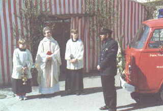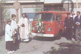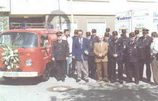Im Rahmen eines kleinen Feuerwehrfestes wurde im Mai 1994 ein gebrauchtes Tragkraftspritzenfahrzeug von der Stadt Osterburken, an die Abteilungswehr Hemsbach, übergeben und von Pfarrer Berg gesegnet.